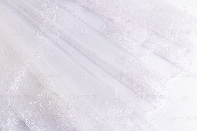 Часть белой свадебной фаты невесты с кружевом и мягкими складками в качестве свадебного фона. Дизайн-макет. Концепция свадьбы