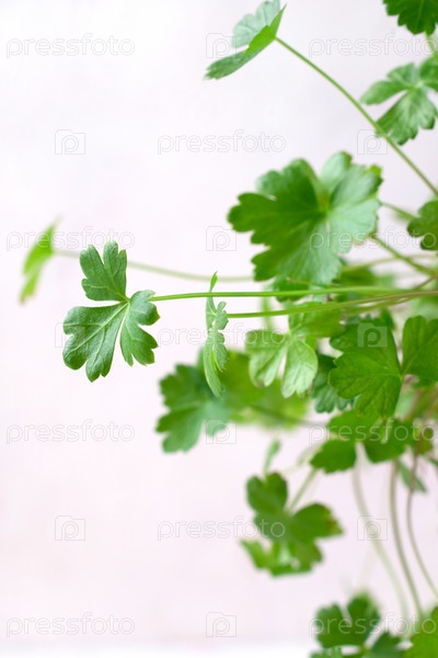 Молодая петрушка растет в горшке на белом фоне. Выращивание трав в домашних условиях