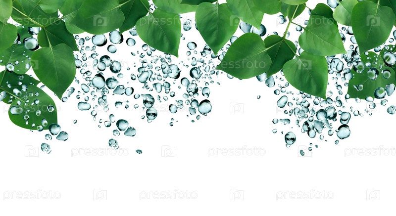Зеленые листья и капли дождя