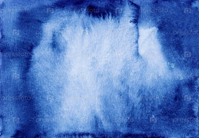 Акварель старый глубокий лазурный синий и белый фон с пространством для текста, ручная роспись. Пятна на бумаге