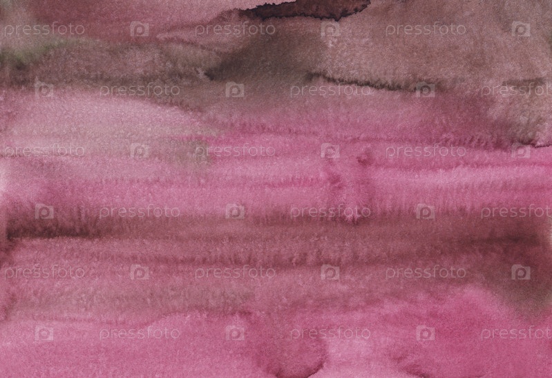 Акварель грязно-коричневый и розовый фон. Абстрактная спокойная акварельная текстура. Пятна на бумаге