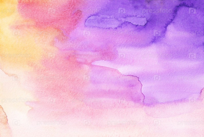 Акварель светло-розовый, желтый, фиолетовый фон. Красочный художественный жидкий фон