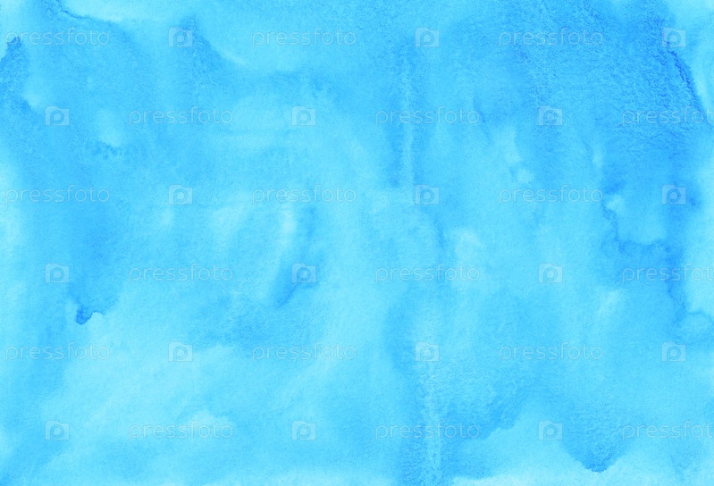 Акварель светло-голубой цвет лагуны фоновой живописи. Акварельные яркие небесно-голубые пятна на бумаге. Художественный фон