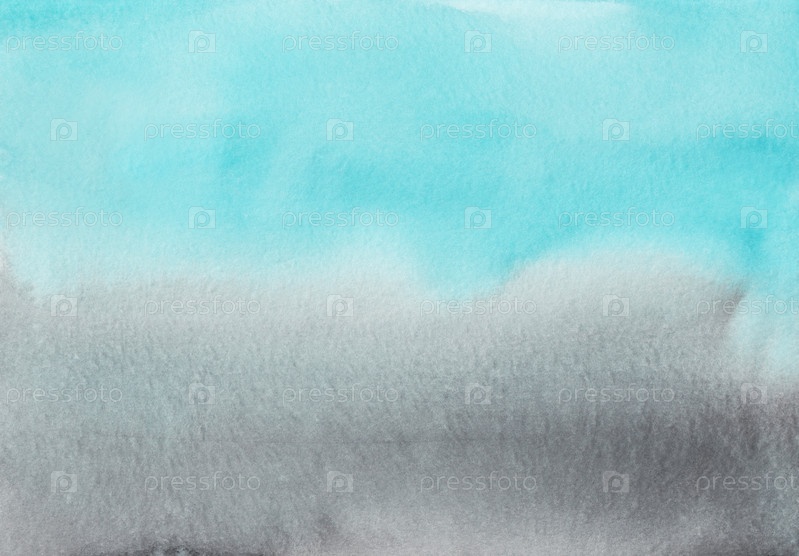 Акварель светло-голубой и серый градиент текстуры фона. Разноцветный мягкий фон омбре, расписанный вручную. Пятна на бумаге