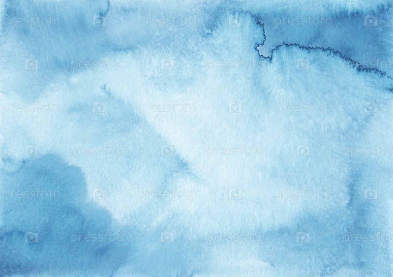 Акварель светло-голубой фоновой текстуры. Лазурно-голубые пятна на бумаге, ручная роспись