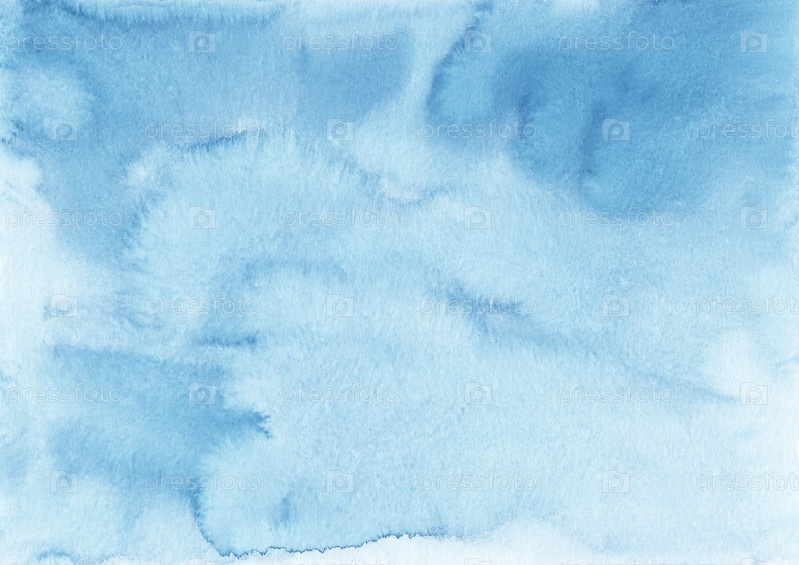 Акварель светло-голубой фон с копией пространства. Лазурно-голубые пятна на бумаге, ручная роспись. Жидкий фон