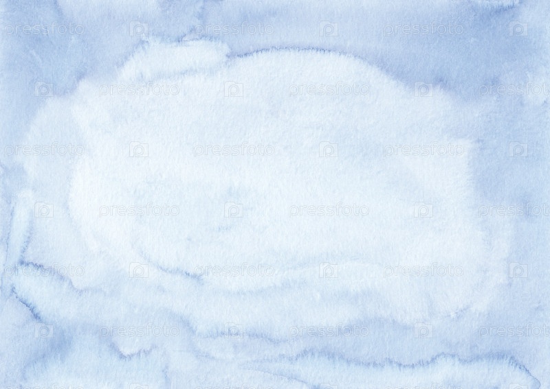 Акварельный пастельный сине-фиолетовый фон с копировальным пространством. Светло-голубые пятна на бумаге, текстура ручной росписи