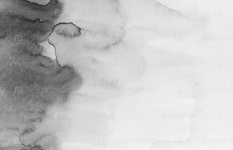 Акварель мягкий черно-белый градиент фона. Абстрактная монохромная живопись. Пятна на бумаге