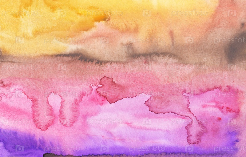 Акварель ярко-розовый, желтый, фиолетовый и коричневый фоновой текстуры. Красочный жидкий фон ручной росписи