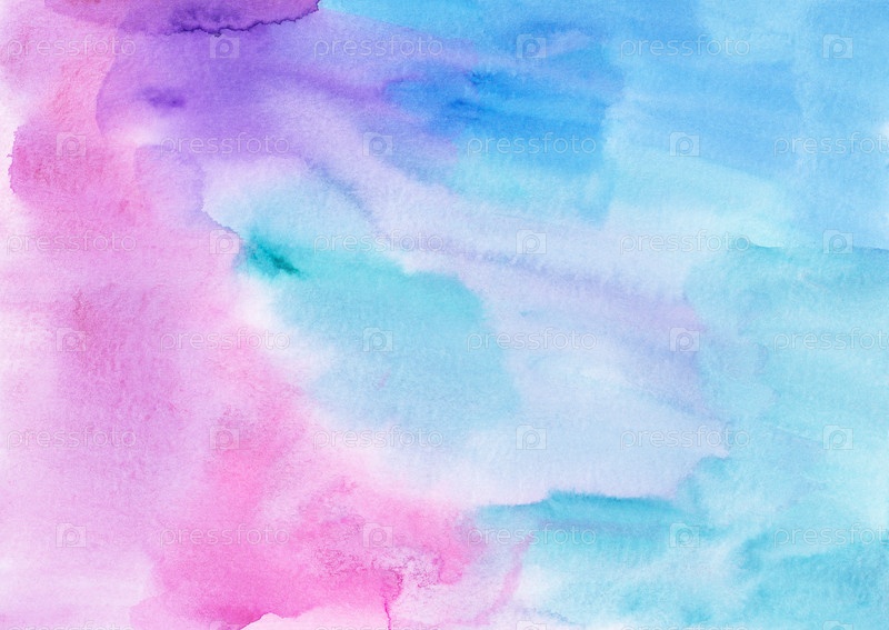 Акварель светло-розовый, синий, фиолетовый фон картины текстуры. Разноцветный пастельный акварельный мягкий фон. Пятна на бумаге