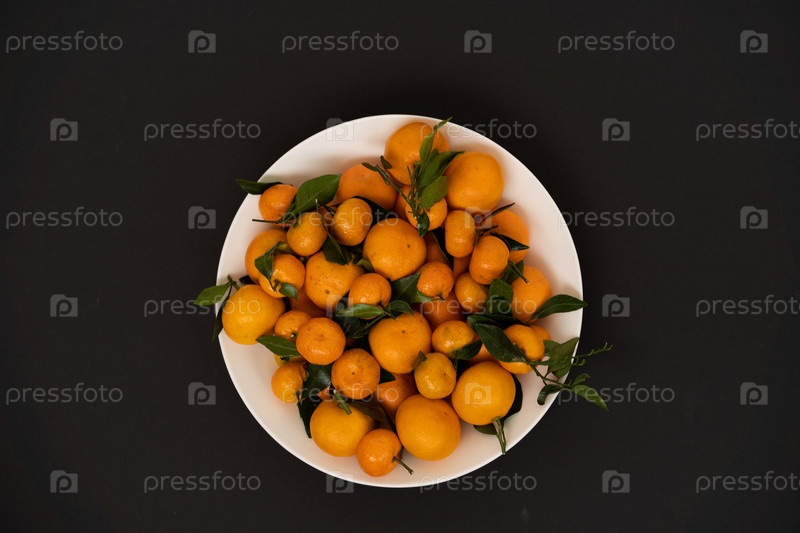 Желтые мандарины лежат на тарелке