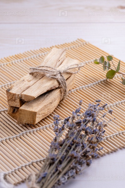 Набор для ароматизации помещения во время медитации, ароматизаторы воздуха в жилище: деревянные палочки санто пало, эвкалипт, лаванда, цитрусовые, апельсиновые дольки, избирательный фокус на пало санто
