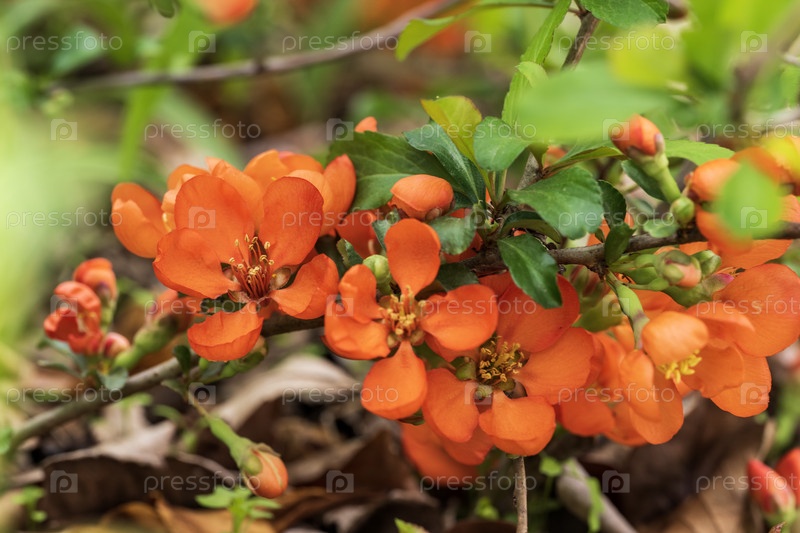 Цветущая японская айва в ботаническом саду