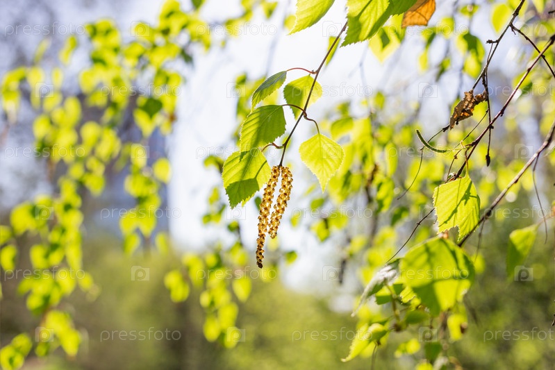 Березовые ветки с цветами. Начало сезона аллергии для людей с аллергией на пыльцу березы. Весенний сезон