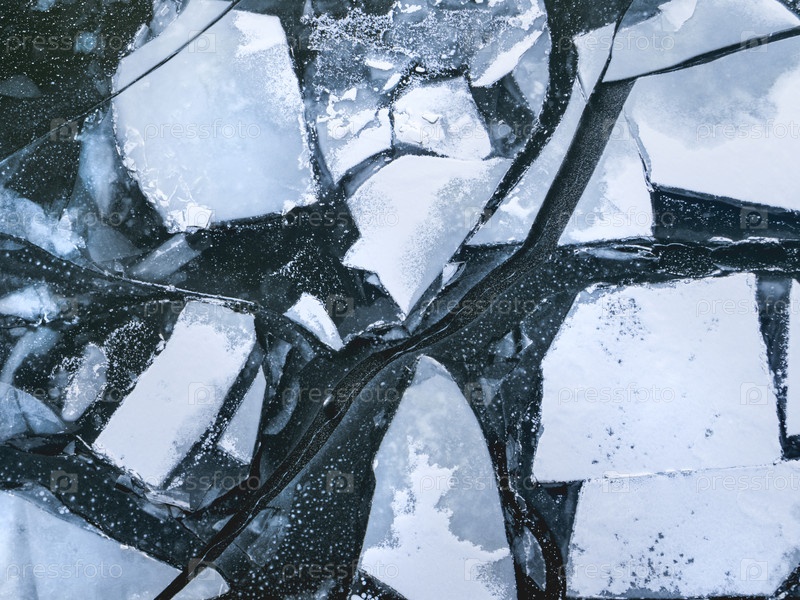 Вид сверху на льдины. Ледоход на реке в весенний день. Изменение погоды в начале теплого сезона