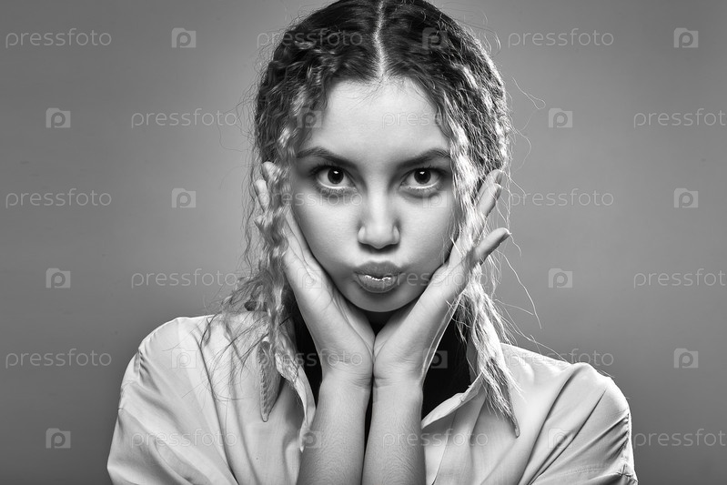 Веселая женщина гримасничает