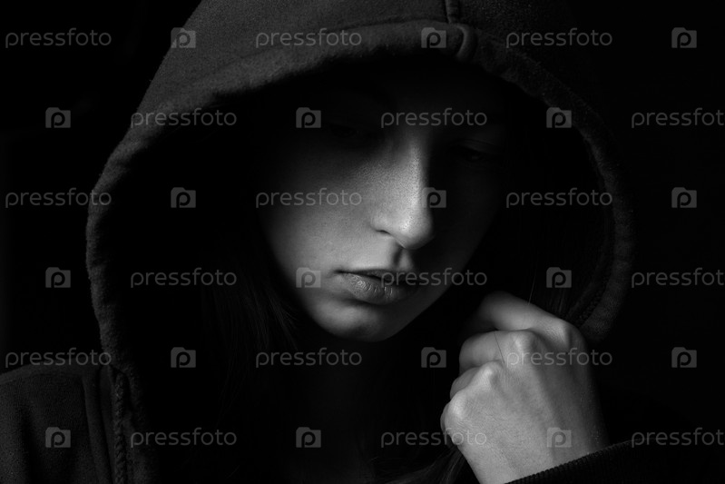 Грустная девушка в капюшоне