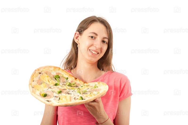 Девушка дарит пиццу