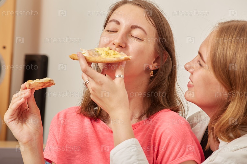 Девушки едят пиццу