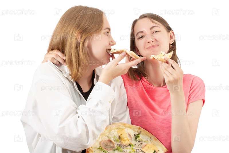 Девочки едят пиццу
