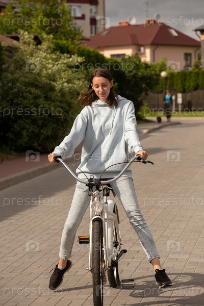 Молодая женщина велосипедист