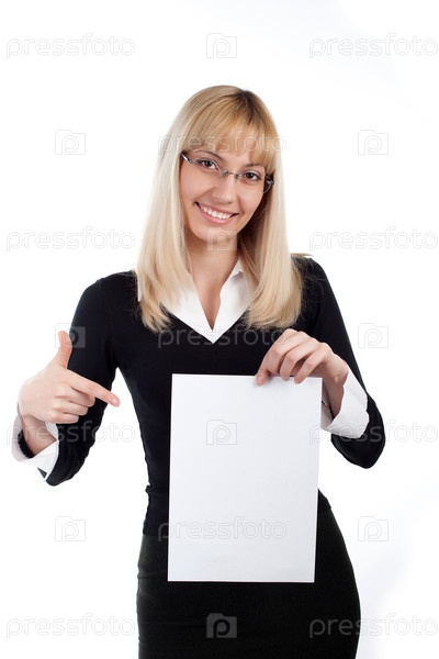 Женщина с бумагой на белом