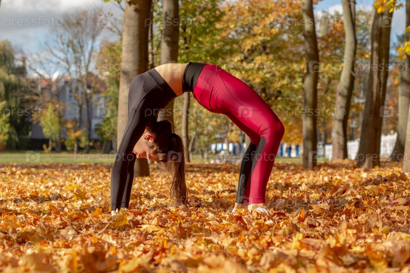 Женщина растягивается на улице