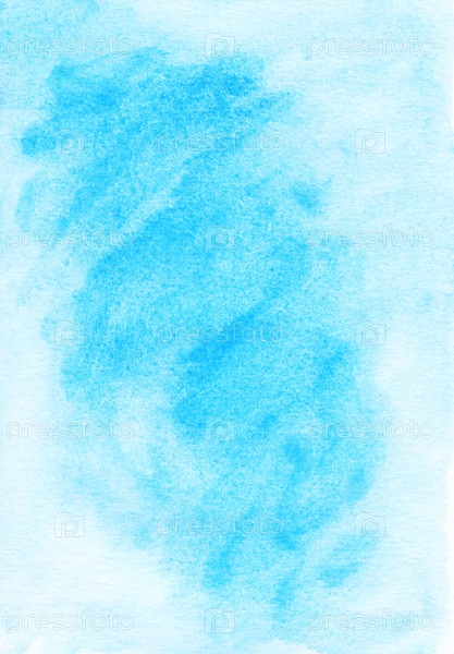 Акварель светло-голубое пятно на белой фактурной бумаге. Художественный фон с местом для текста