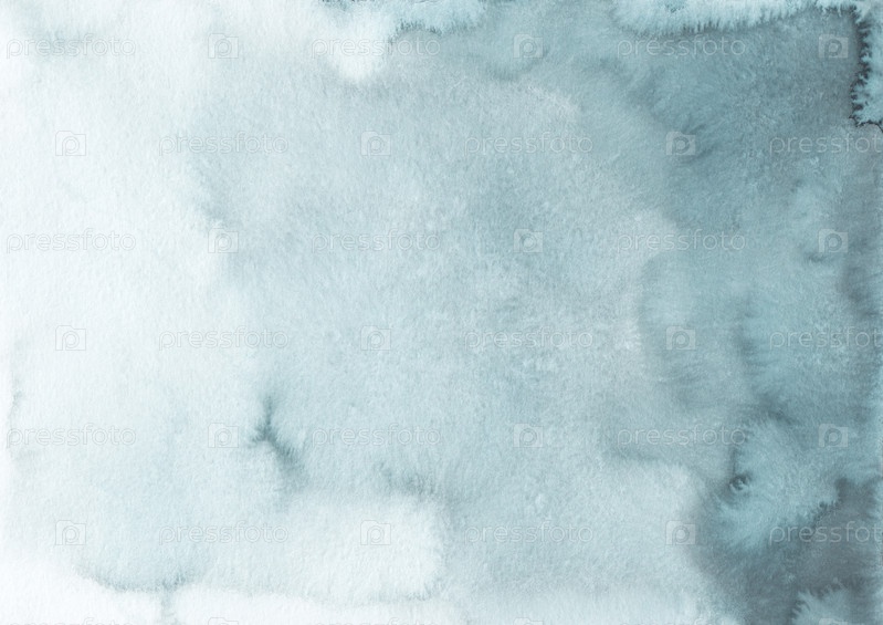 Акварельный дым цвета омбре фоновой текстуры. Серый градиентный фон. Акварель серо-голубые разводы на бумаге, ручная роспись