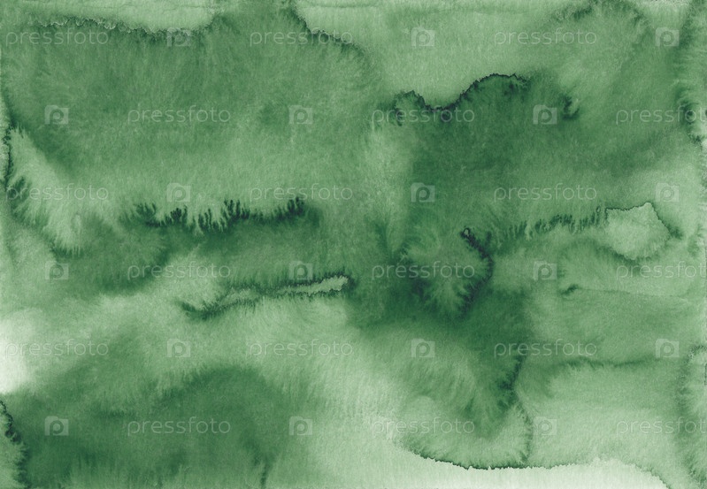 Абстрактная зеленая акварельная текстура фона, раскрашенная вручную. Художественный фон изумрудного цвета, пятна на бумаге. Акварельные обои