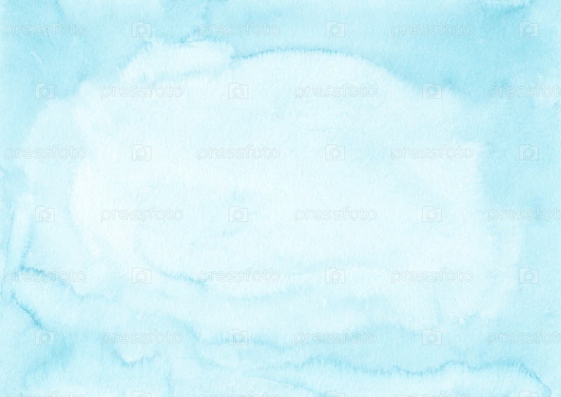 Акварельный пастельный бирюзовый фон с копировальным пространством. Светлые сине-зеленые пятна на бумаге, текстура ручной росписи