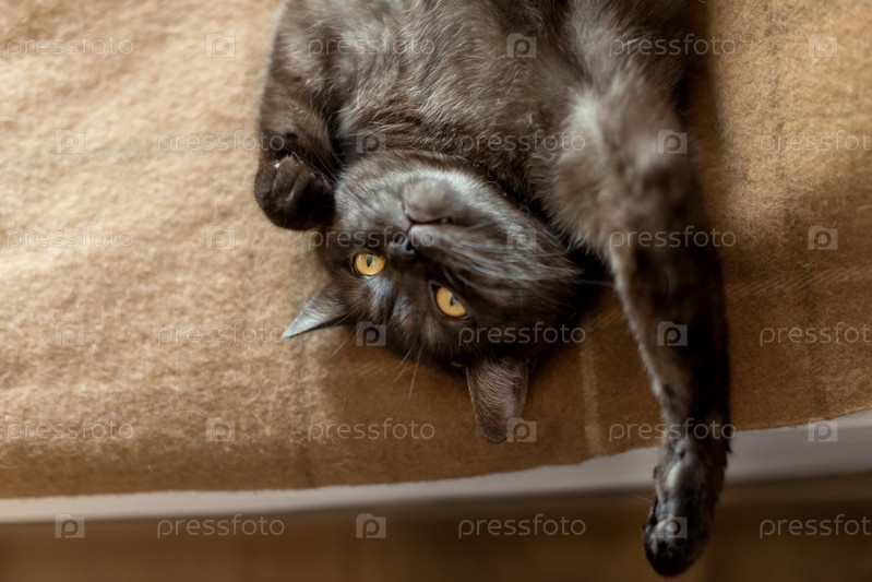 Кот лежит на диване вверх ногами