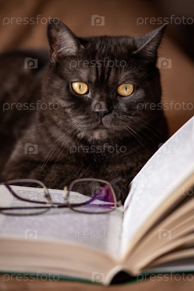 Кот притворяется, что читает книгу