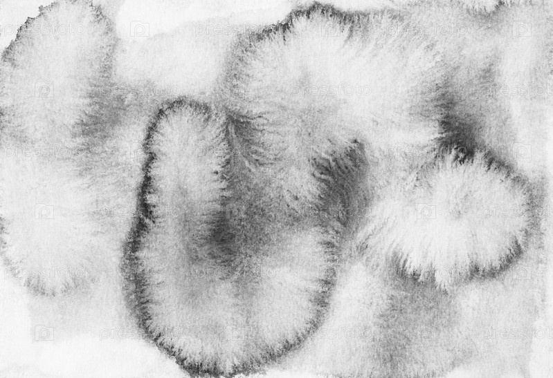 Акварель светло-серый фон текстуры. Черно-белые пятна на бумаге. Монохромный водянистый фон