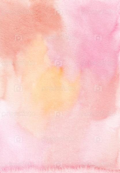 Абстрактная пастельно-розовая, оранжевая, желтая акварельная текстура фона, ручная роспись. Художественный светло-розовый и желтый фон, пятна на бумаге. Акварельные обои кораллового цвета