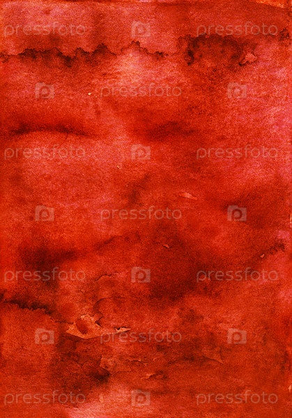 Акварель яркий ржавый красный фон текстуры. Глубокий старый красный фон, расписанный вручную. Пятна на бумаге