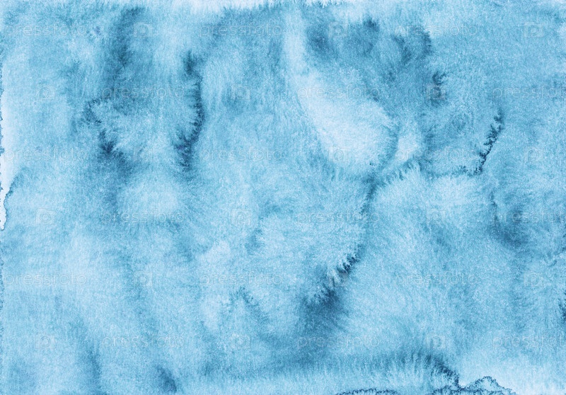Акварель жидкая светло-голубая текстура фона. Фон лазурно-голубого цвета, пятна на бумаге. Ручной росписью