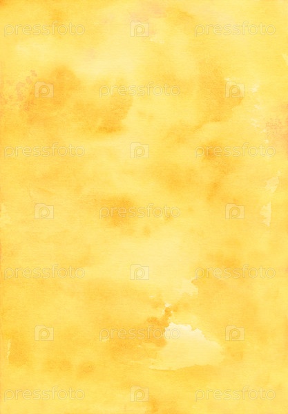 Ярко-желтый акварельный фон. Акварель абстрактный медовый цвет фона. Пятна на бумаге