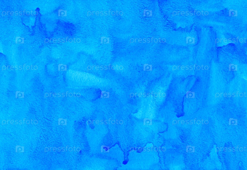 Акварель водянистая светло-голубая фоновая живопись. Ручная роспись акварельной текстурой фона. Небесно-голубые пятна на бумаге