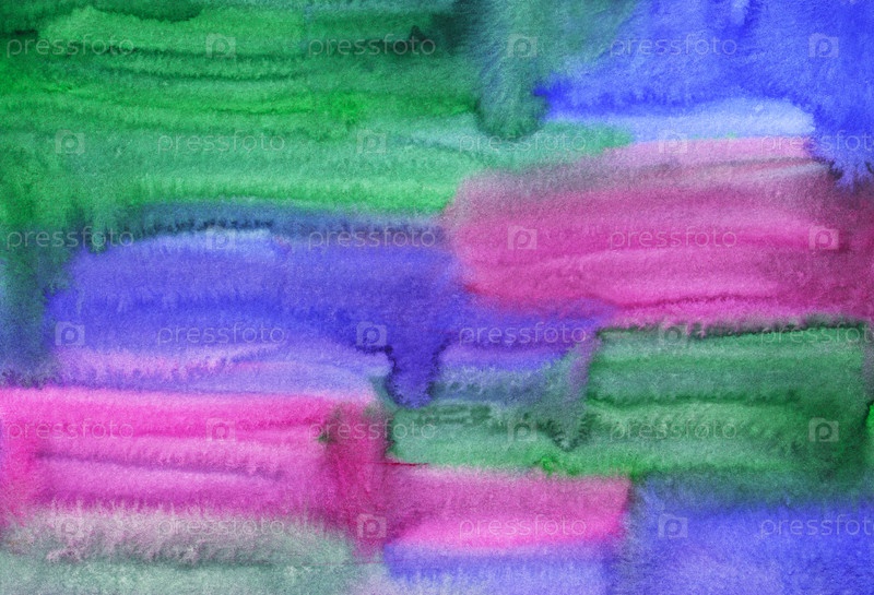 Акварель ярко-синий, розовый и зеленый фон картины текстуры. Разноцветный акварельный жидкий фон. Пятна на бумаге
