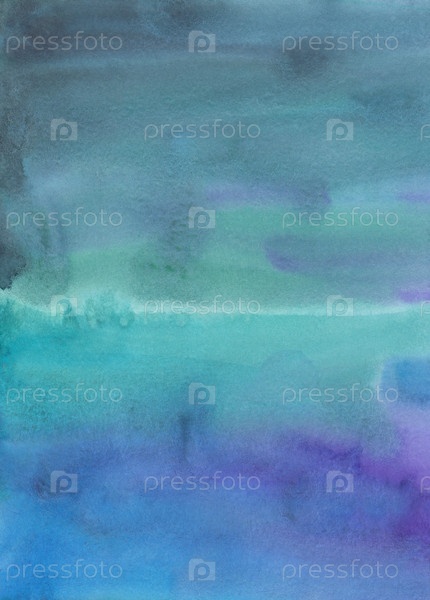 Акварель фиолетовый и зеленый фон, мазки на бумаге. Фон жидких акварельных пятен