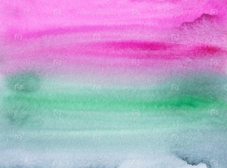Акварель светло-розовый, сине-серый, зеленый фон картины текстуры. Разноцветный светлый акварельный мягкий фон. Пятна на бумаге
