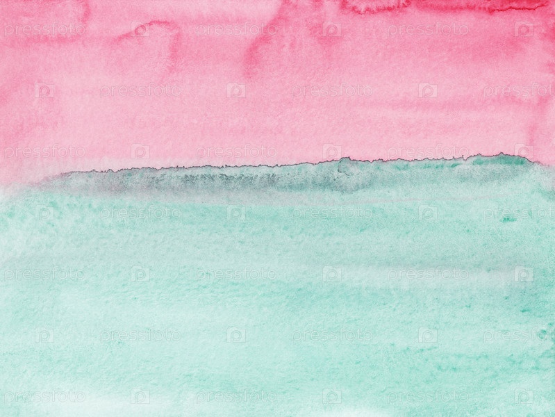 Акварель светло-розовый и зеленый фон картины текстуры. Абстрактный пастельный пейзаж. Разноцветный акварельный жидкий фон. Пятна на бумаге