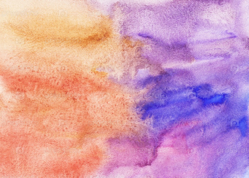 Акварель светло-фиолетовый, красновато-коричневый, синий фон картины текстуры. Разноцветный акварельный пастельный фон, пятна на бумаге
