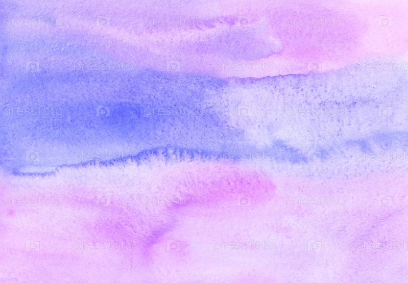 Акварель светло-розовый, синий, фиолетовый и белый фон текстуры. Мазки кистью на бумаге. Акварель пастельный фиолетовый и розовый фон