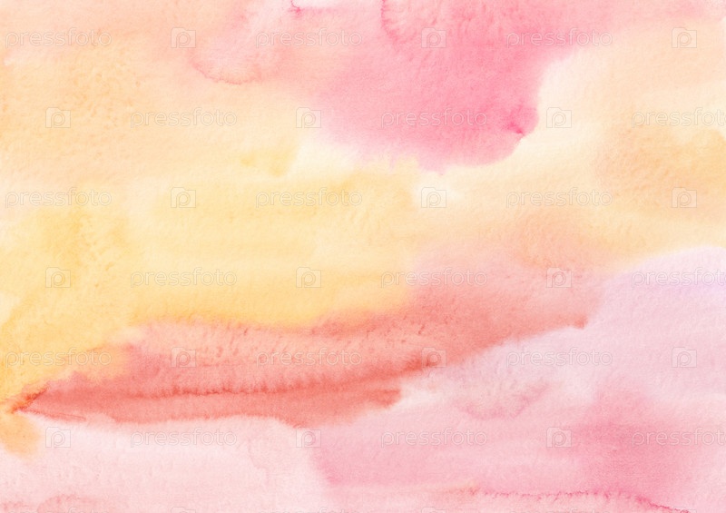 Акварель светло-коралловая и желтая текстура фоновой живописи. Мягкий акварельный пастельно-розовый и персиковый фон. Пятна на бумаге