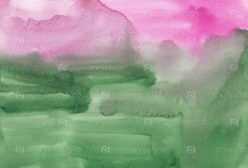 Акварель грязный светло-розовый и зеленый абстрактный фон текстуры. Мазки кистью на бумаге
