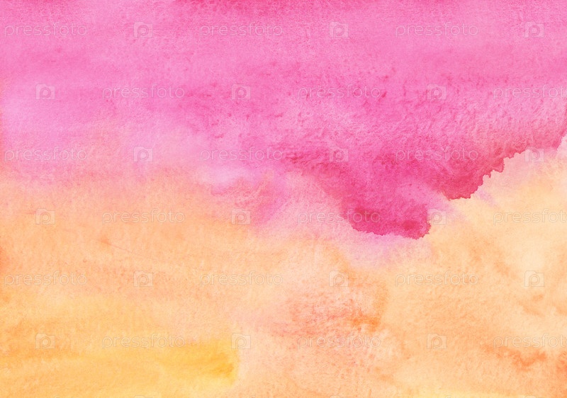 Акварель ярко-розовый, желтый, персиковый цвет фона. Красочный мягкий светлый фон, пятна на бумаге