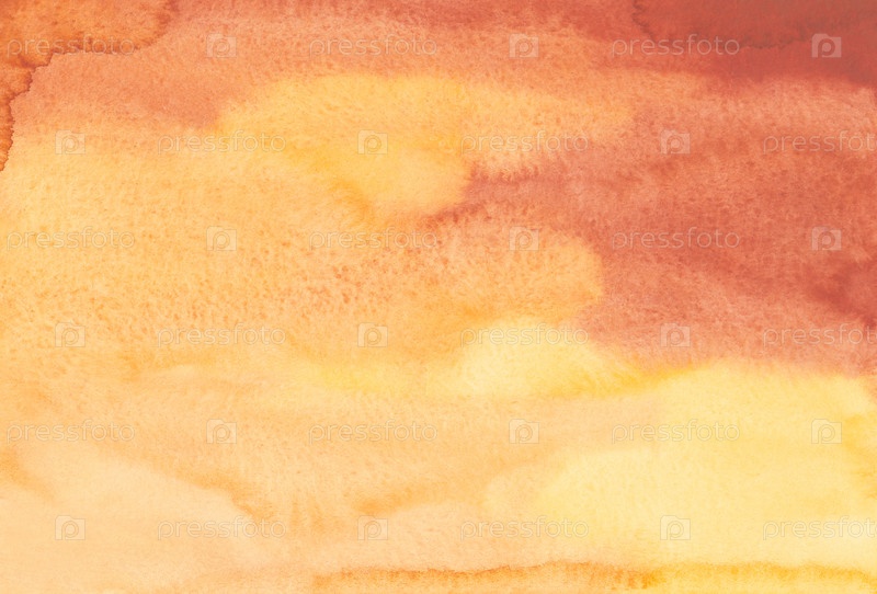 Акварель ярко-желтый, персиковый и красновато-коричневый фон. Пятна на бумаге, жидкий фон. Размытая текстура