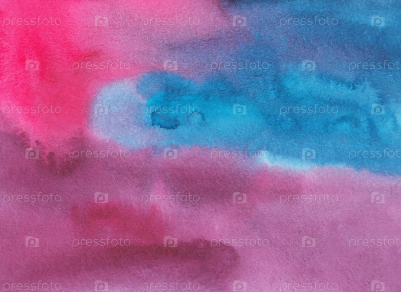 Акварель темно-розовый и синий фон. фон. Абстрактный жидкий малиновый и бирюзовый фон. Пятна на бумаге